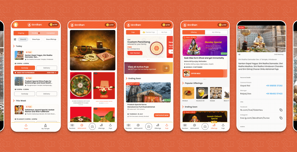 - Core product ownership: We shape the core app UX/UI, visual system, website, and marketing—from formalizing the first group-puja workflow during COVID to a scalable, production-ready platform.