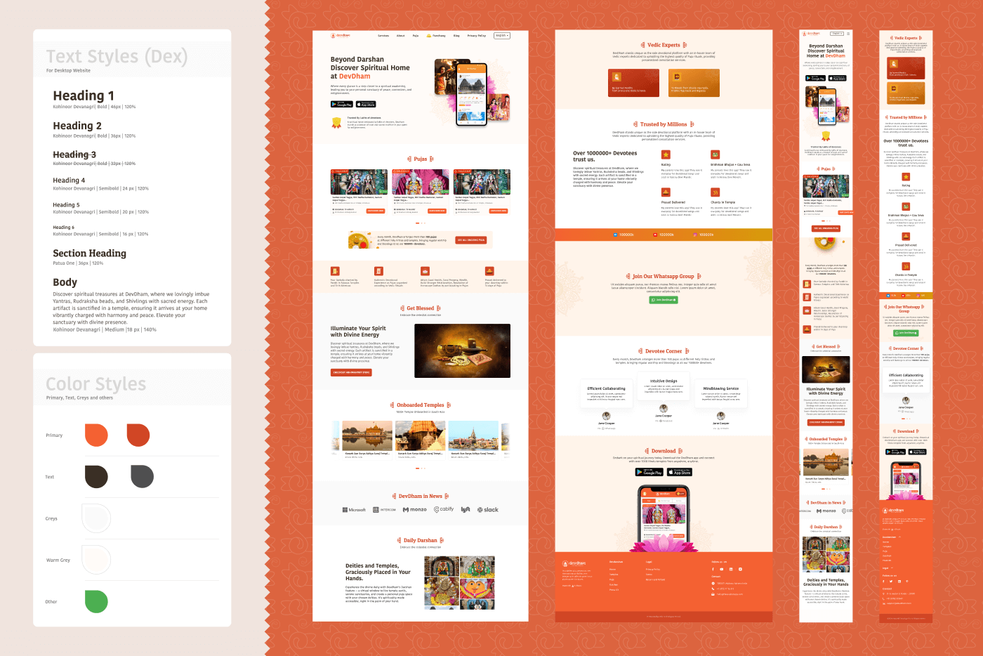 - Multi-year partnership & rebrand: We partner from the project’s infancy (then DevDarshan) and lead the rebrand to DevDham—new identity, collateral system, website, and a redesigned app experience.